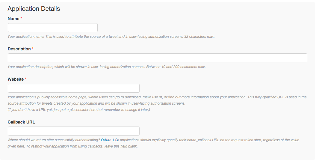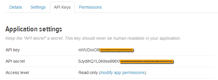 you need the twitter App's consumer key, consumer secret, access token and access token secret for twitter authentication.