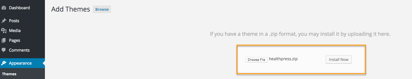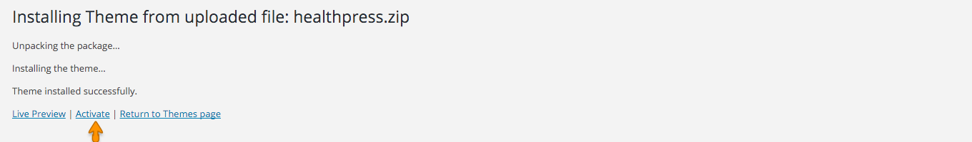 - Extract the healthpress.zip file and put the healthpress folder in 'wp-content/themes/' folder