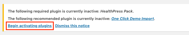 - A notice will be displayed right after the activation of the theme asking you to install and activate the required plugins. So, go ahead and click on Begin installing plugins.