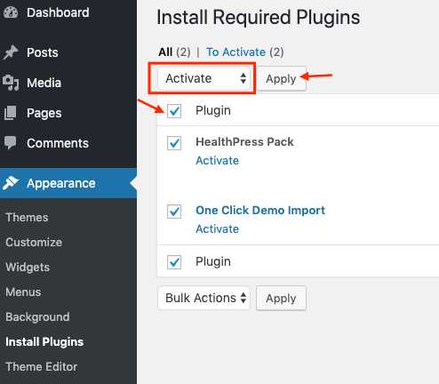 - Once again select all the plugins and click on Activate and then click on Apply to activate all the plugins and you are done.