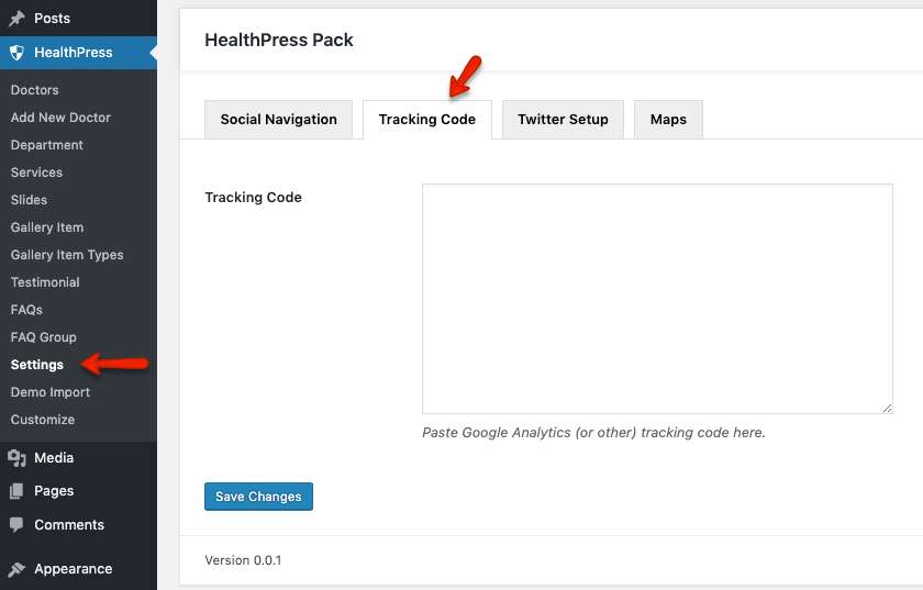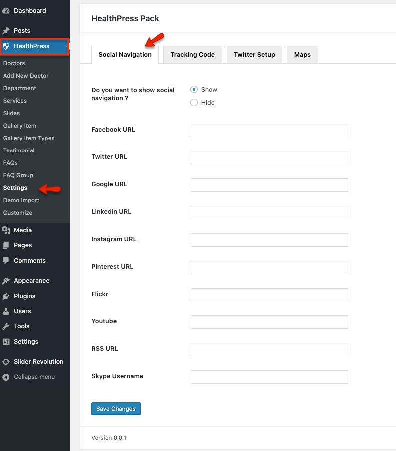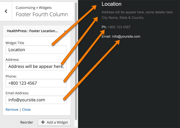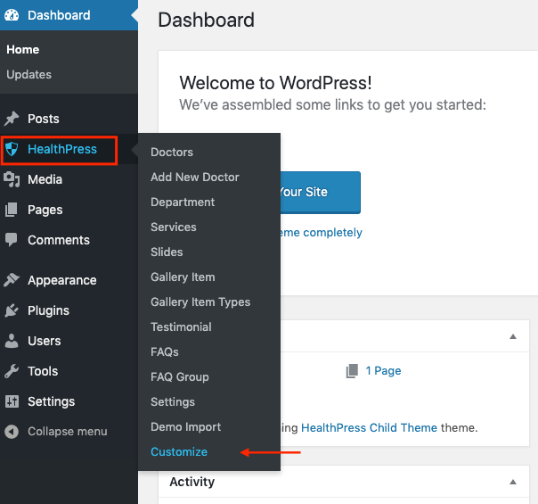 - After activation go to "HealthPress → Customize" to play with theme's settings. You can also import the demo data before changing any settings in the Customizer.