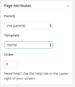 To set up the Home page you need to create a new page, Go to Pages > Add New. You can give this page a title "Home" yet you do not need to include any contents for now. Select the “Home” template from the Page Attributes section, as displayed in screen shot below and click “Publish”.