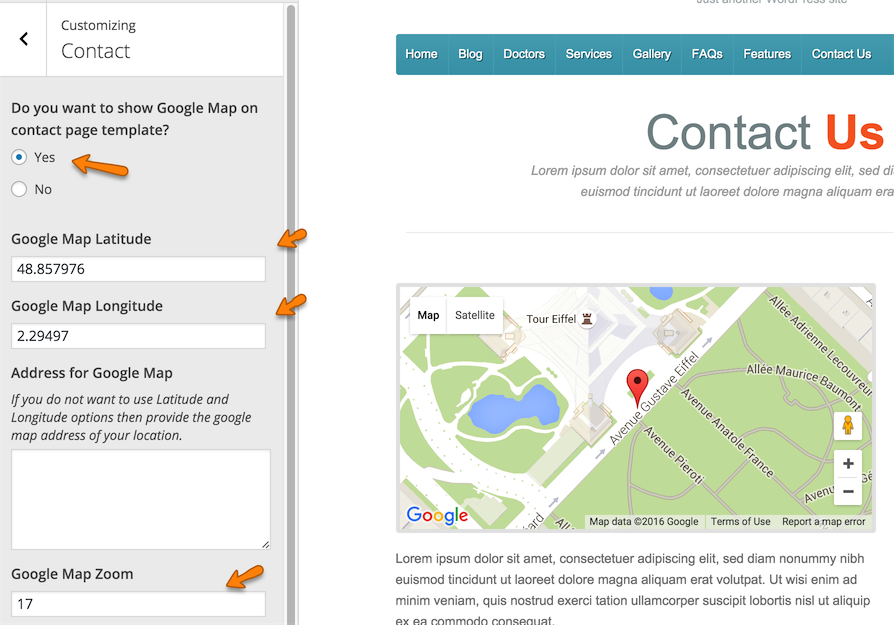 - Next step is to configure Contact Customizer options from Appearance > Customize > Contact.